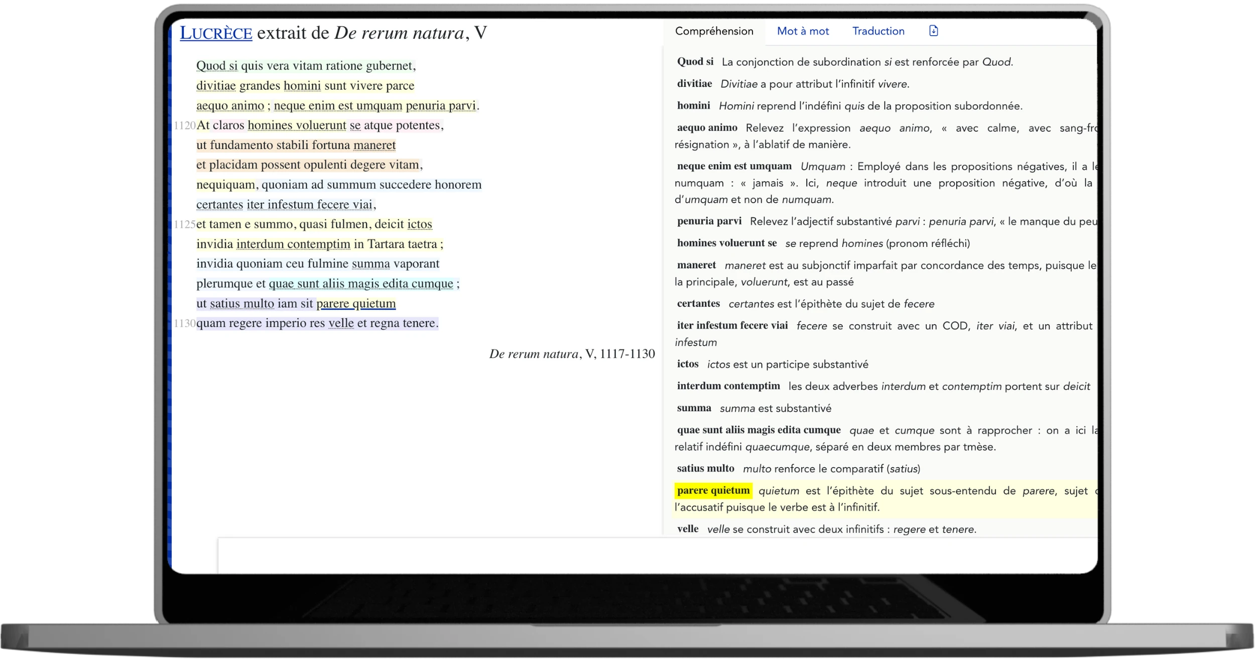 Lire le texteDes textes latins interactifs très précisément annotés pour être sûr de tout comprendre !